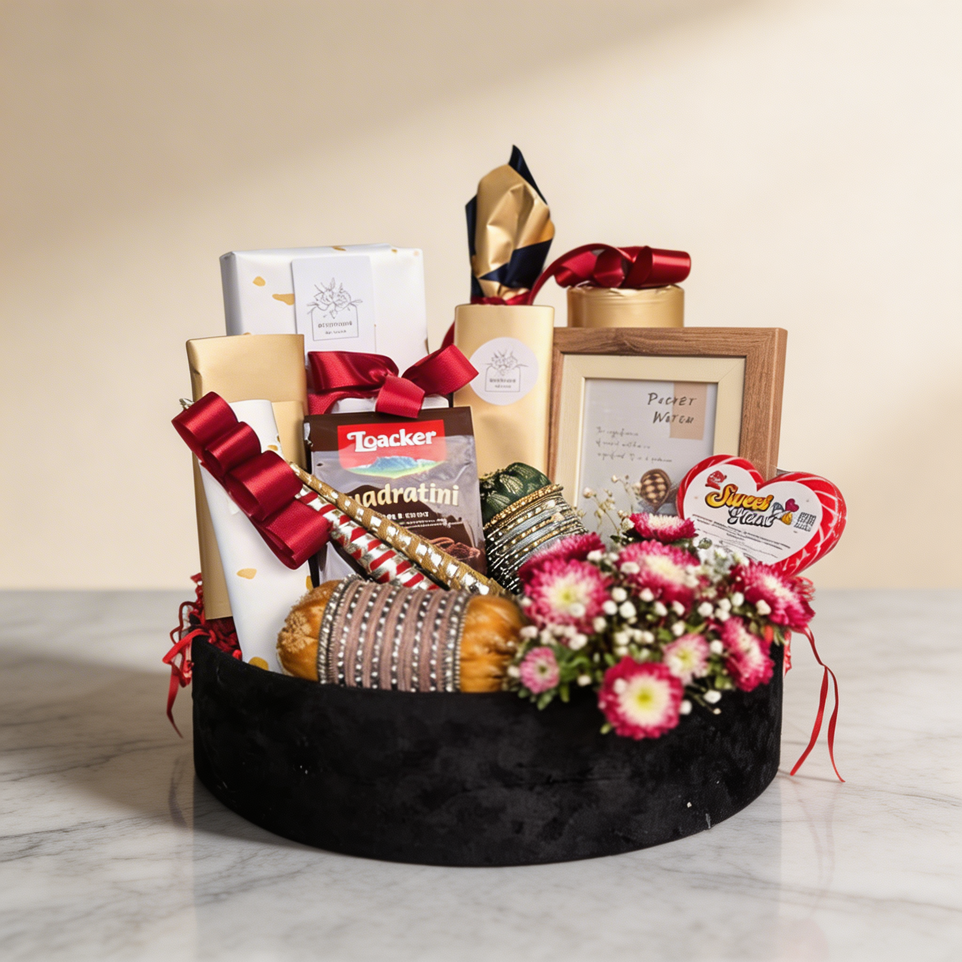 A perfect blend of sweet indulgence and thoughtful gifts, beautifully arranged to create a memorable surprise.